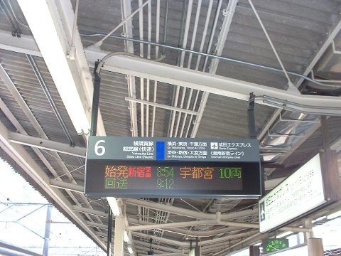 大宮駅の発車案内。 高崎線からは東海道線に しか行かないのに、 なぜ青が…? |